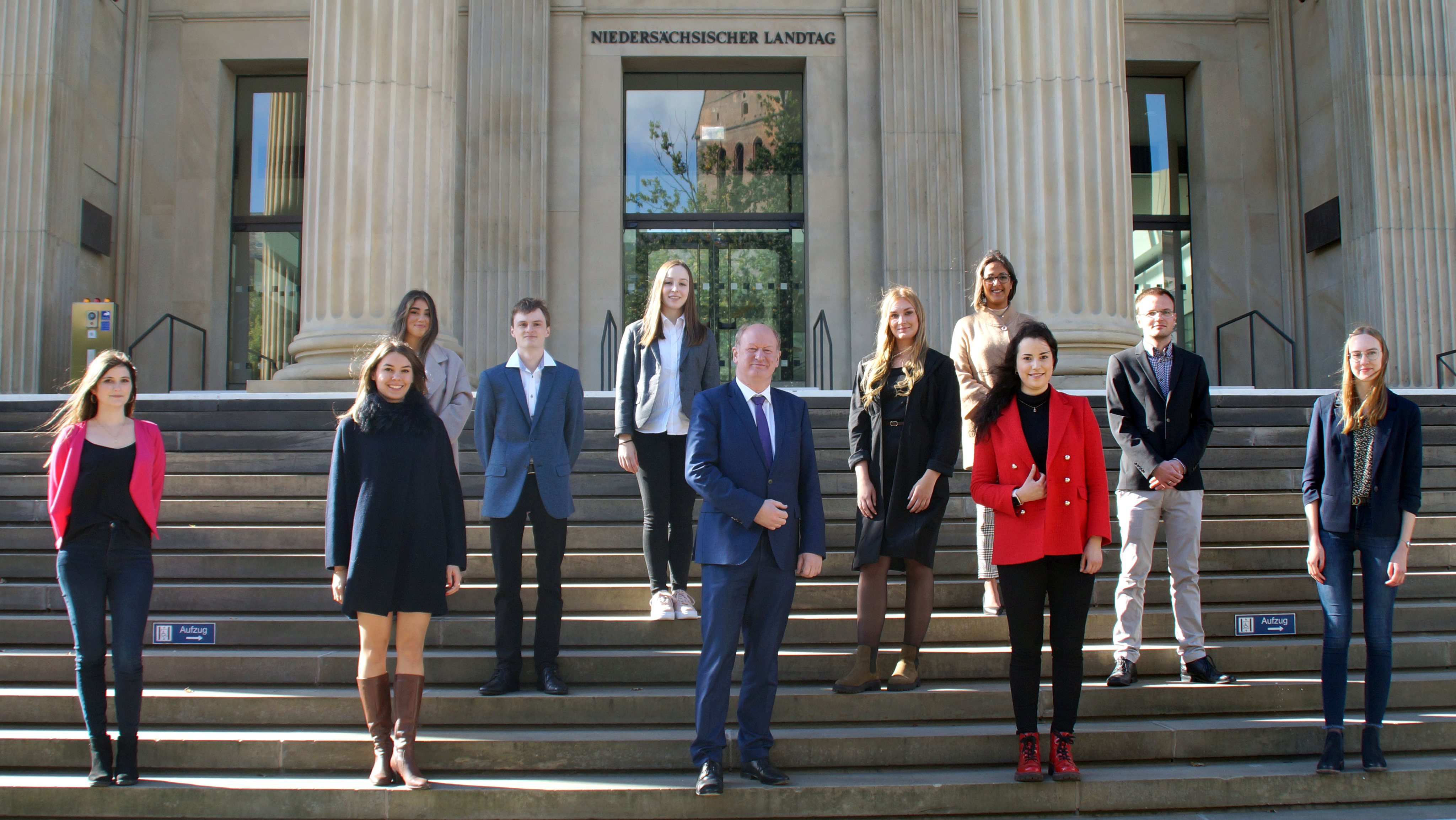 Hannover. Im vergangenen Jahr konnte Finanzminister Reinhold Hilbers auf Grund der Covid-19-Pandemie nicht die jahrgangsbesten Absolventinnen und Absolventen der Steuerakademie Niedersachsen einladen, um Ihnen persönlich zu gratulieren. Am (heutigen) Donnerstag begrüßte er aber sowohl die Jahrgangsbesten des vergangenen als auch dieses Jahres zu einer Führung durch den Niedersächsischen Landtag: „Ihnen stehen die unterschiedlichsten Wege für eine Karriere in der Finanzverwaltung offen! Mit Ihrer bewiesenen hohen Leistungsfähigkeit in Kombination mit der qualitativ hochwertigen Ausbildung werden Sie überall mit offenen Armen empfangen.“