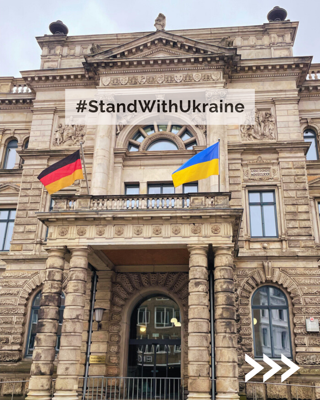 24.02.2025: Heute vor drei Jahren hat Russland den zerstörerischen Angriffskrieg auf die Ukraine begonnen. Als Zeichen der Solidarität weht heute auch am Niedersächsischen Finanzministerium die Nationalflagge der Ukraine.