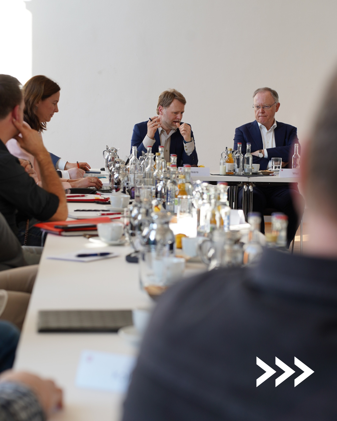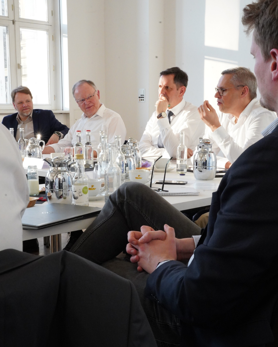 04.08.2025: Ein wichtiger Austausch in sehr herausfordernden Zeiten: Finanzminister Gerald Heere hat sich heute zusammen mit Ministerpräsident Stephan Weil und Wirtschaftsminister Olaf Lies mit Betriebsratsvorsitzenden von kleinen und mittleren Unternehmen der Elektro- und Metallindustrie getroffen.