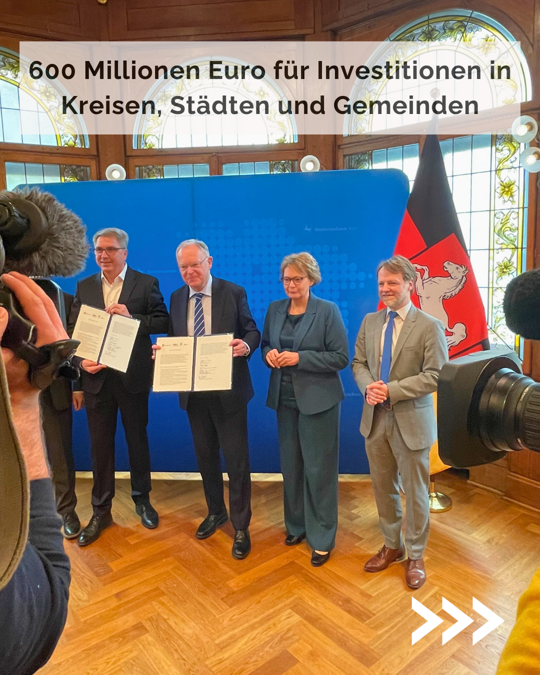 24.03.2025: Ein starkes Signal der Solidarität an die niedersächsischen Kreise, Städte und Gemeinden: Heute haben die Landesregierung und die Kommunalen Spitzenverbände einen Pakt für Kommunalinvestitionen unterzeichnet. Bis Ende 2028 können die Kommunen insgesamt 600 Millionen Euro für Investitionen abrufen. Wofür sie das Geld genau verwenden, bleibt ihnen selbst überlassen.