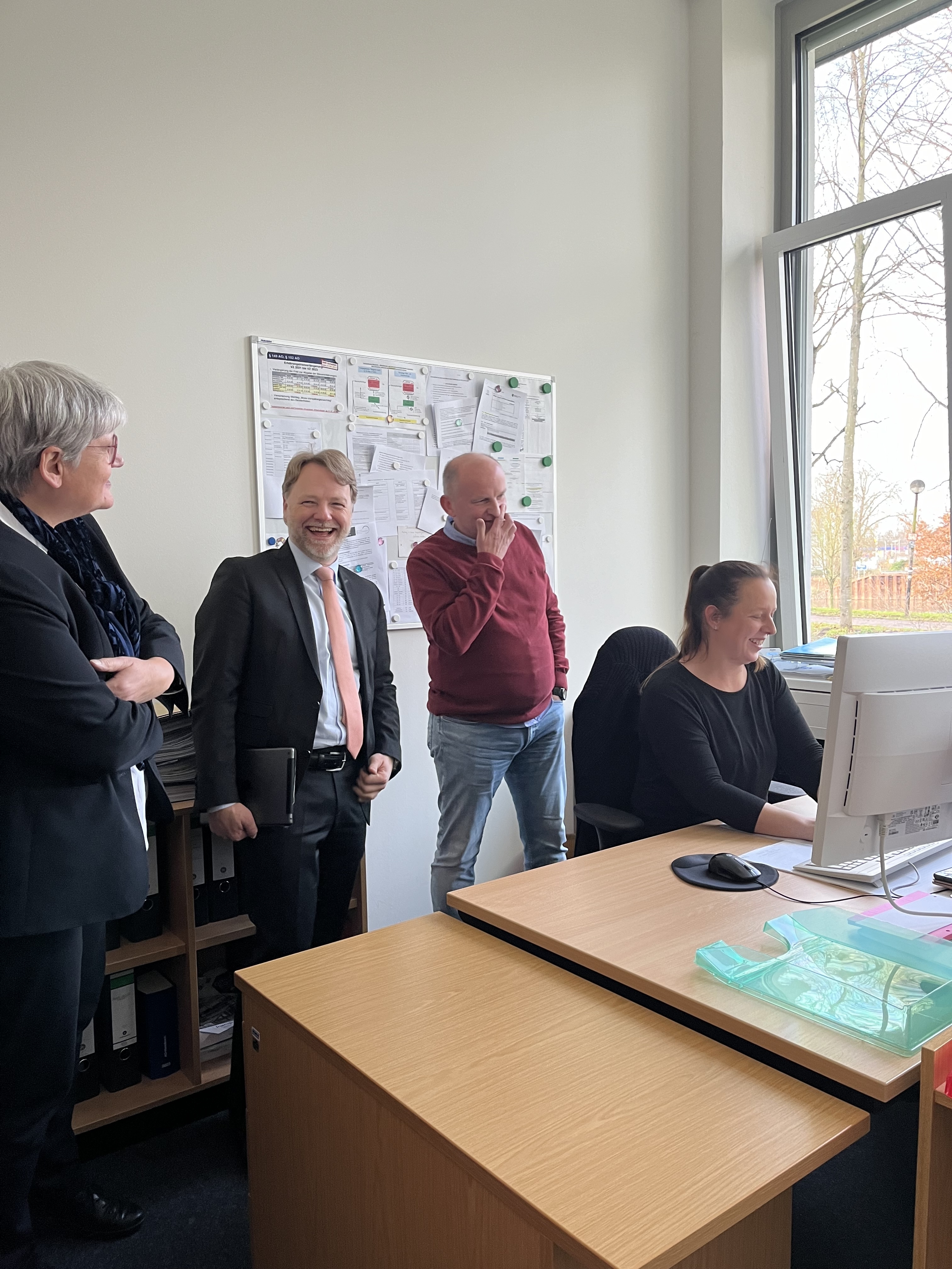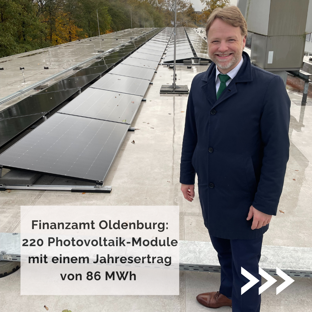 Finanzminister Gerald Heere hat sich gestern in luftiger Höhe selbst ein Bild gemacht: „Wir gehen als Land mit gutem Beispiel voran, um einen wirksamen Beitrag zur energetischen Transformation zu leisten. Ich bedanke mich herzlich bei allen, die am Bau dieser Anlage beteiligt waren und so ein Stück zur Photovoltaik-Offensive beitragen: bei den Beschäftigten des Finanzamtes, den Kolleginnen und Kollegen des Staatlichen Baumanagements und bei unserem Kooperationspartner, der enercity AG.“