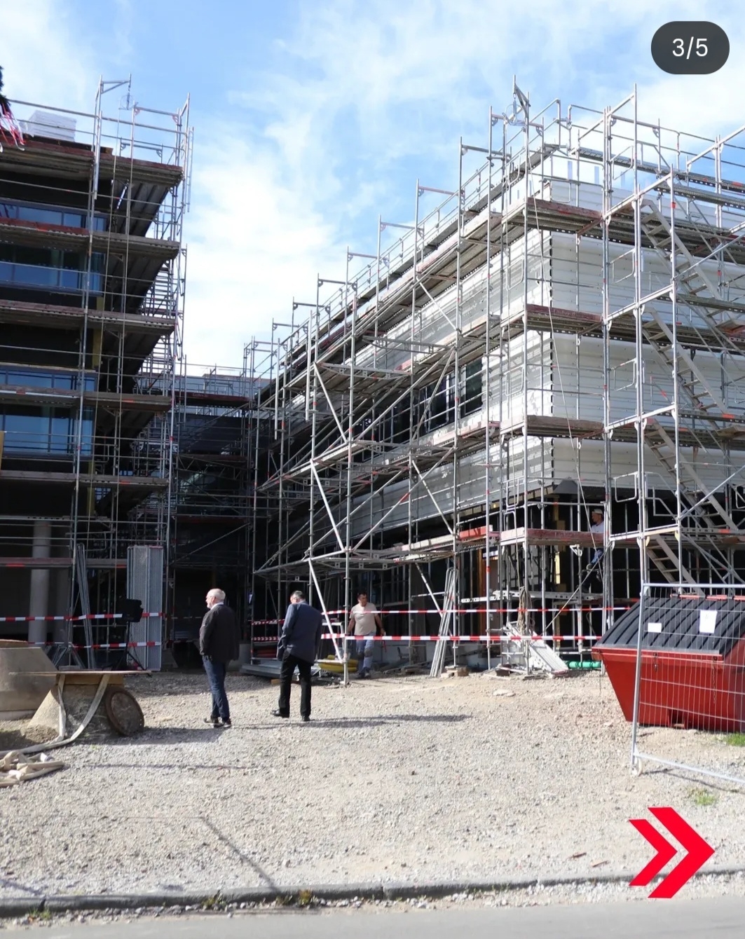 - Hörsaalgebäude: entkernt, baudicht, Fassadenarbeiten & Innenausbau voll im Gange.