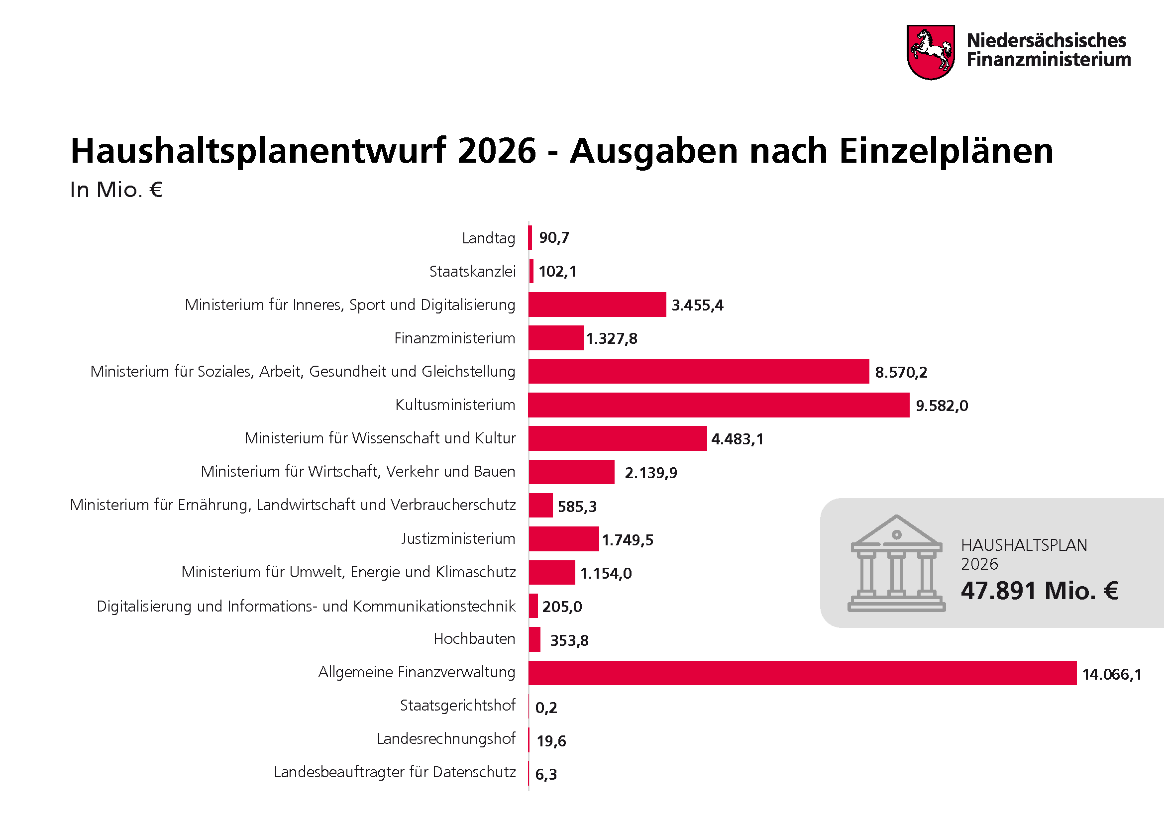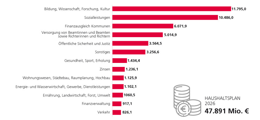 Der Entwurf für das Haushaltsjahr 2026 sieht ein Volumen von rund 47,89 Milliarden Euro vor.